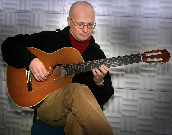 Songwriter, Solo- und Bandkünstler Libor Fišer im Studio.