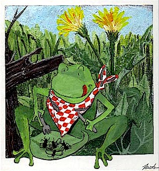 Ein Frosch humpelt mit einem dicken Verband in der Nähe des Teiches herum. Es kommt eine Kröte des Weges und fragt ihn neugierig: „Was ist denn mit Dir passiert?"............................ ........... Darauf der Frosch: „ Brille vergessen, Knallfrosch geküsst." |